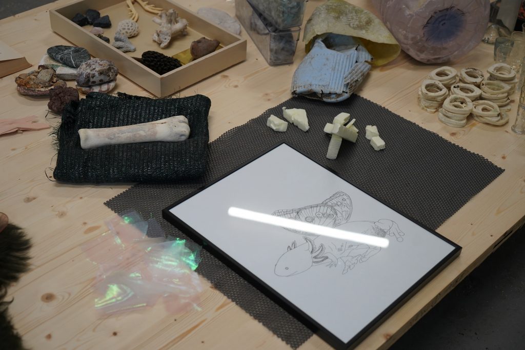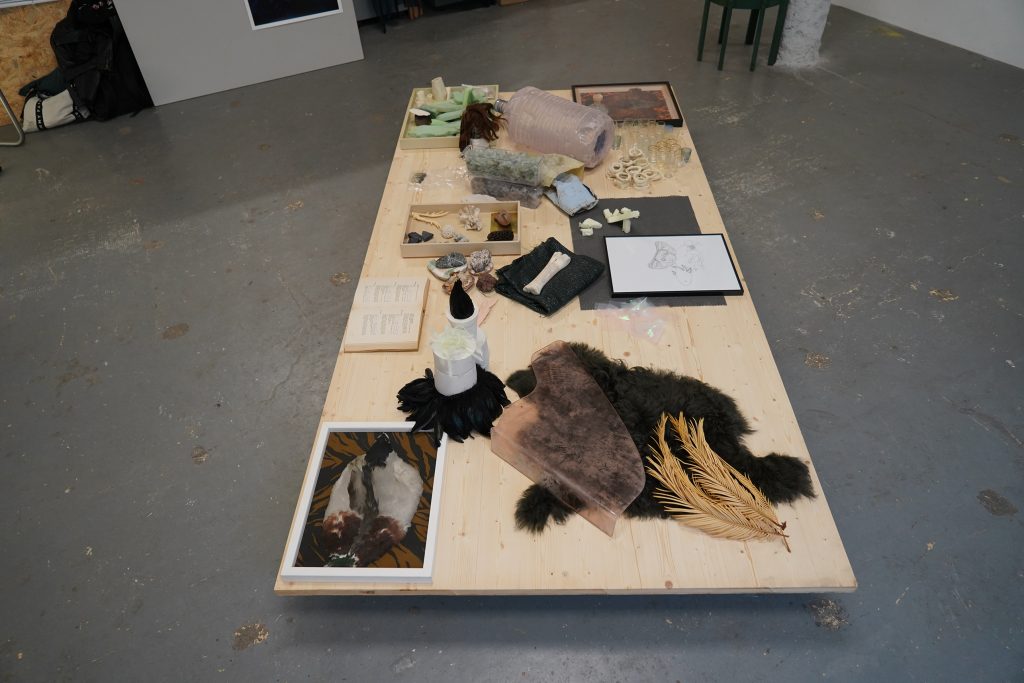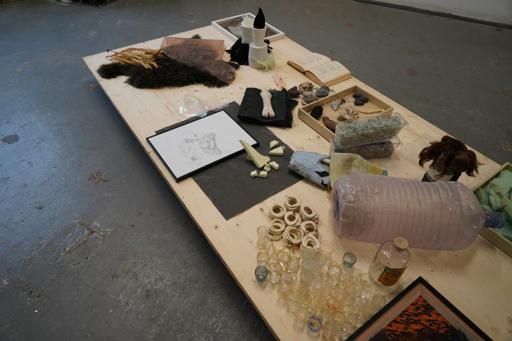 Anaïs Leroy récolte et collecte des matériaux sources de récits à venir, porteurs d’activation dans le cadre de performances et d’installations. Cette récolte constitue une collection à l’image d’un cabinet de curiosités.